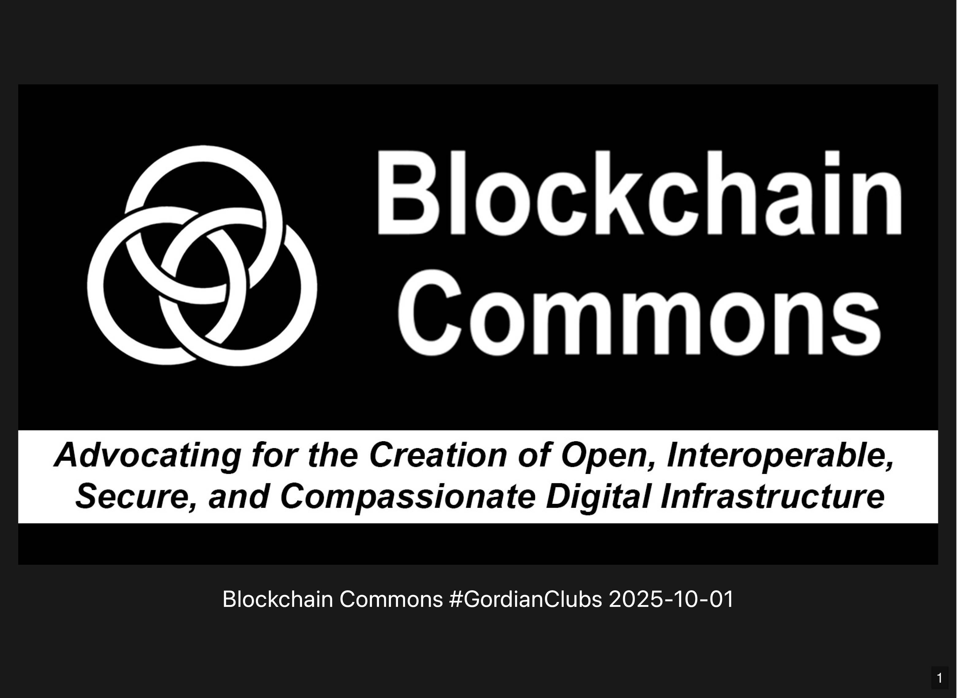 The Gordian Developer Meeting on October 1, 2025 focused on Gordian Clubs. A full demo of clubs-cli-rust, built on the clubs-rust library, was the first working proof-of-concept for autonomous cryptographic objects, which enable decentralized access control without servers or infrastructure. It represented the culmination of Christopher Allen’s 34-year journey to realize cryptographic clubs, originally inspired by Project Xanadu’s club system in 1991.
