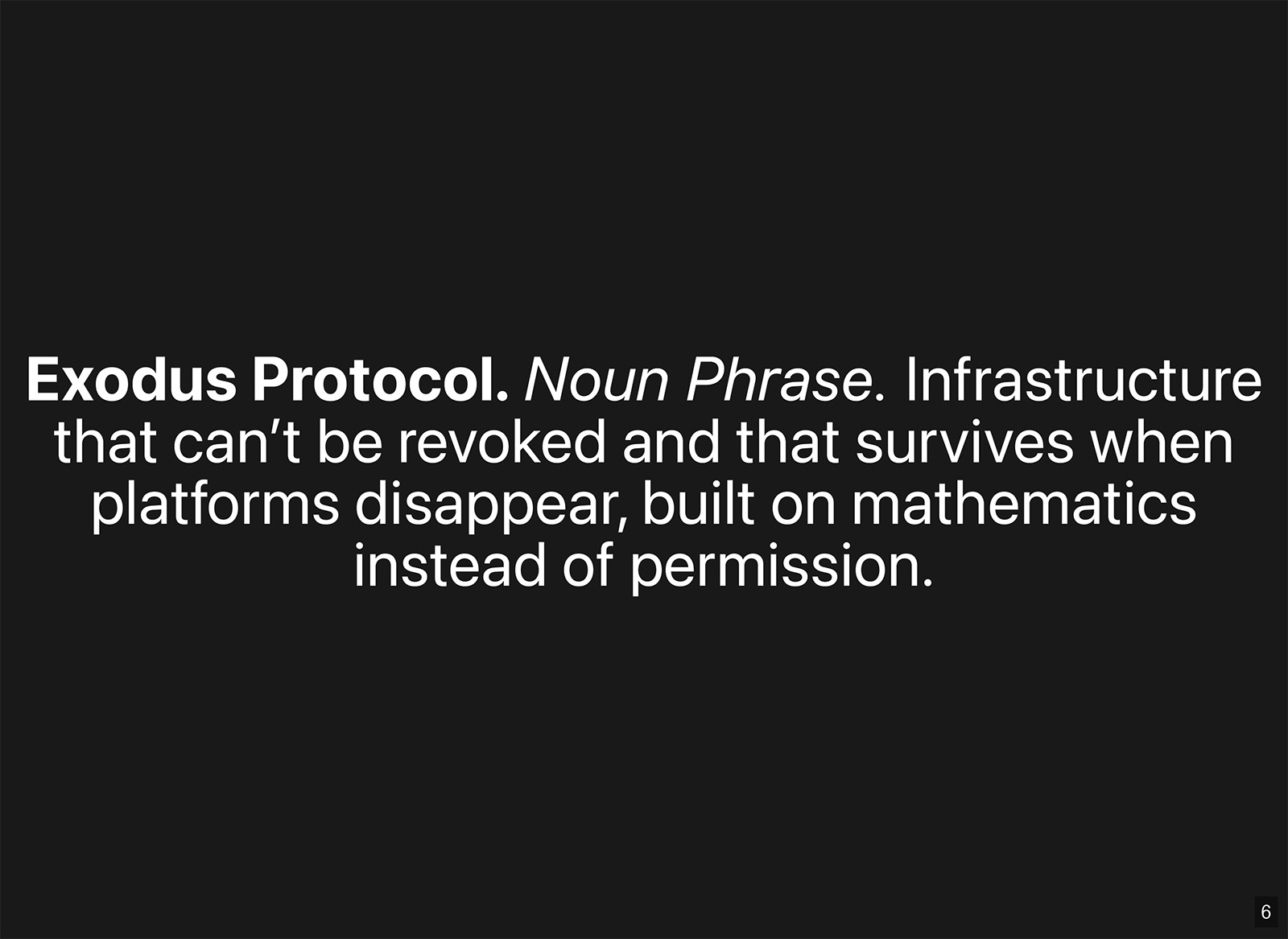 - Exodus Protocols. Sometimes infrastructure just disappears. Exodus Protocols, with a foundation in five concrete design patterns, are built to ensure this can never happen. Also see our recent Musings of a Trust Architect on the topic.